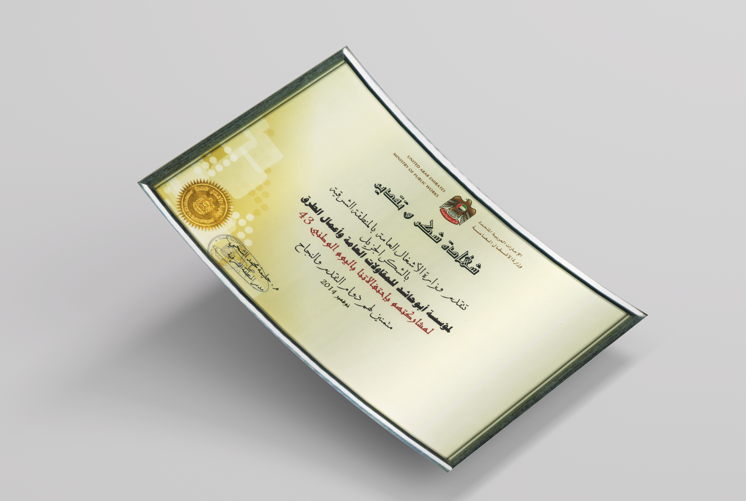 شهادة شكر و تقدير من وزارة الأشغال العامة المنطقة الشرقية